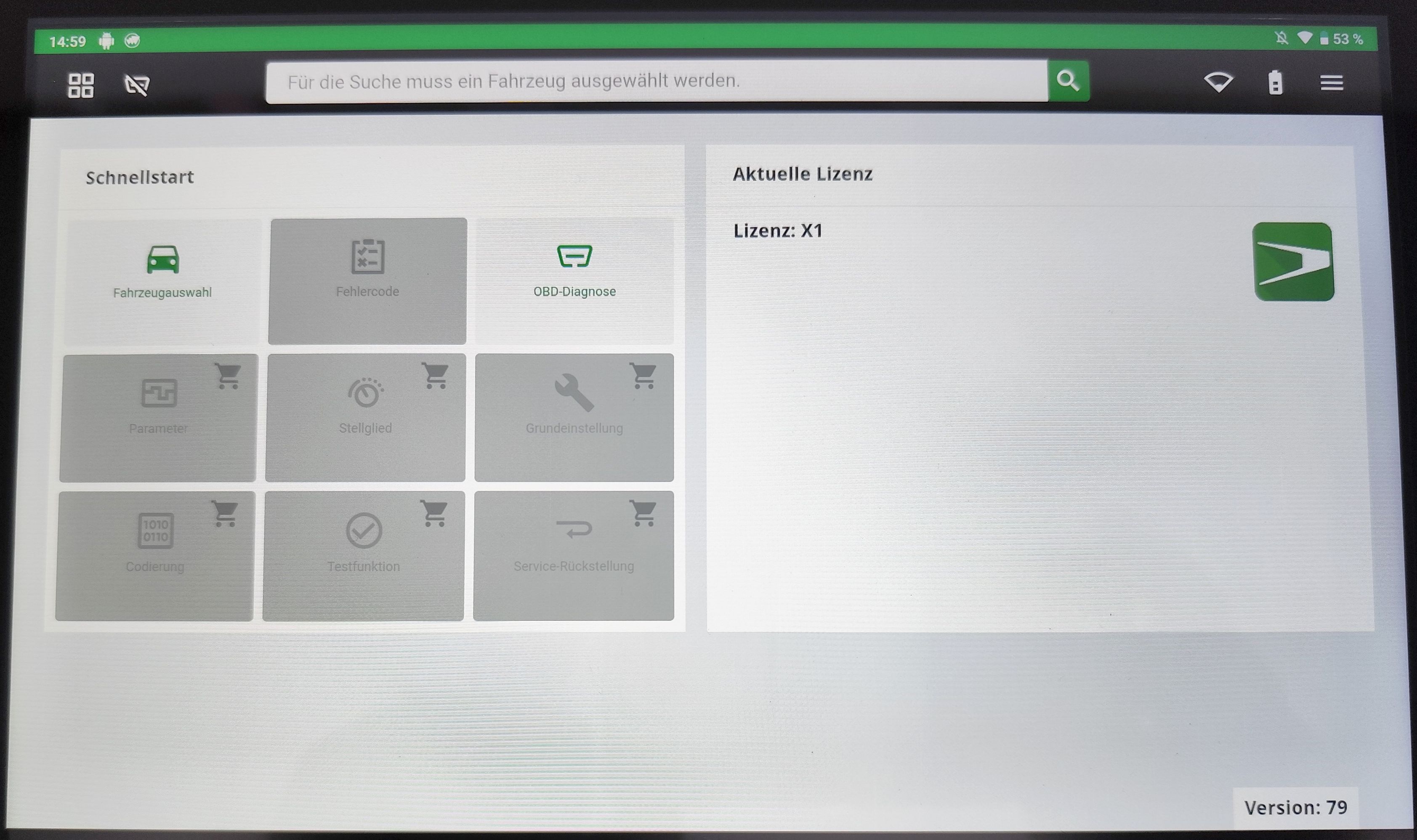 Sie kaufen ein neues, technisch voll funktionstüchtiges Diagnosegerät mit aktuellem Update Version 79.