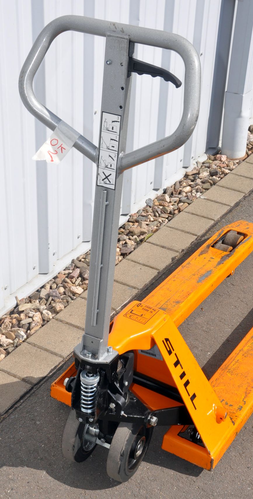 Sie kaufen einen technisch voll funktionstüchtigen gebrauchten Hand-Hubwagen in gutem Zustand. Er hebt und senkt sehr gut!