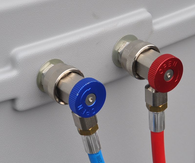 Das Gerät ist ein Vollautomat der nach Eingabe der Fahrzeugdaten den Service automatisch durchführt. ( absaugen, Recycling, Evakuieren, Öl absaugen, Öl einfüllen, Kontrastmittel einfüllen, Kältemittel befüllen )