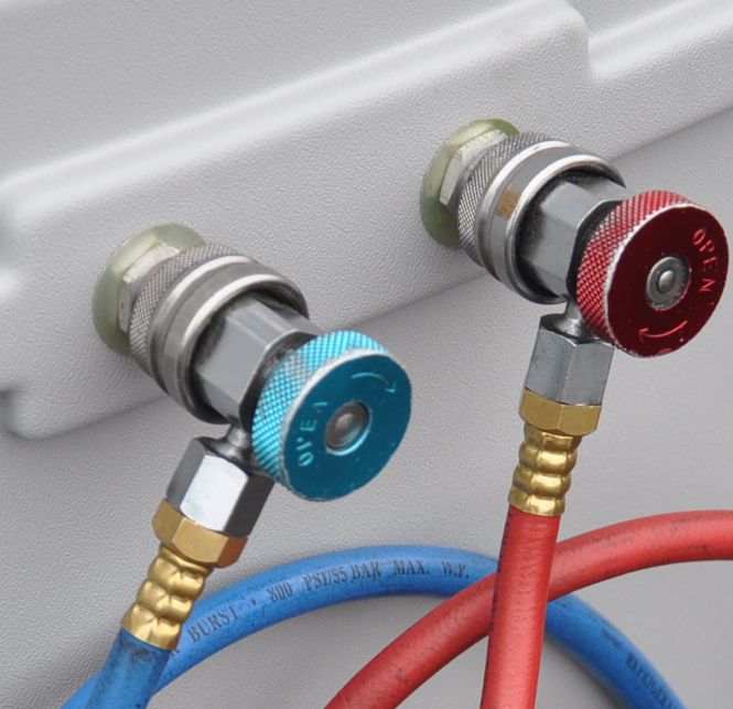 Das Gerät ist ein Vollautomat der nach Eingabe der Fahrzeugdaten den Service automatisch durchführt. ( absaugen, Recycling, Evakuieren, Öl absaugen, Öl einfüllen, Kontrastmittel einfüllen, Kältemittel befüllen )