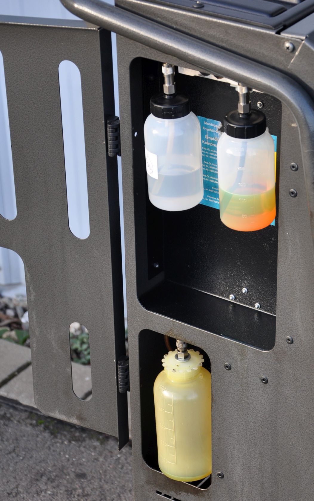 Das Gerät ist ein Vollautomat der nach Eingabe der Fahrzeugdaten den Service automatisch durchführt. ( absaugen, Recycling, Evakuieren, Öl absaugen, Öl einfüllen, Kontrastmittel einfüllen, Kältemittel befüllen )