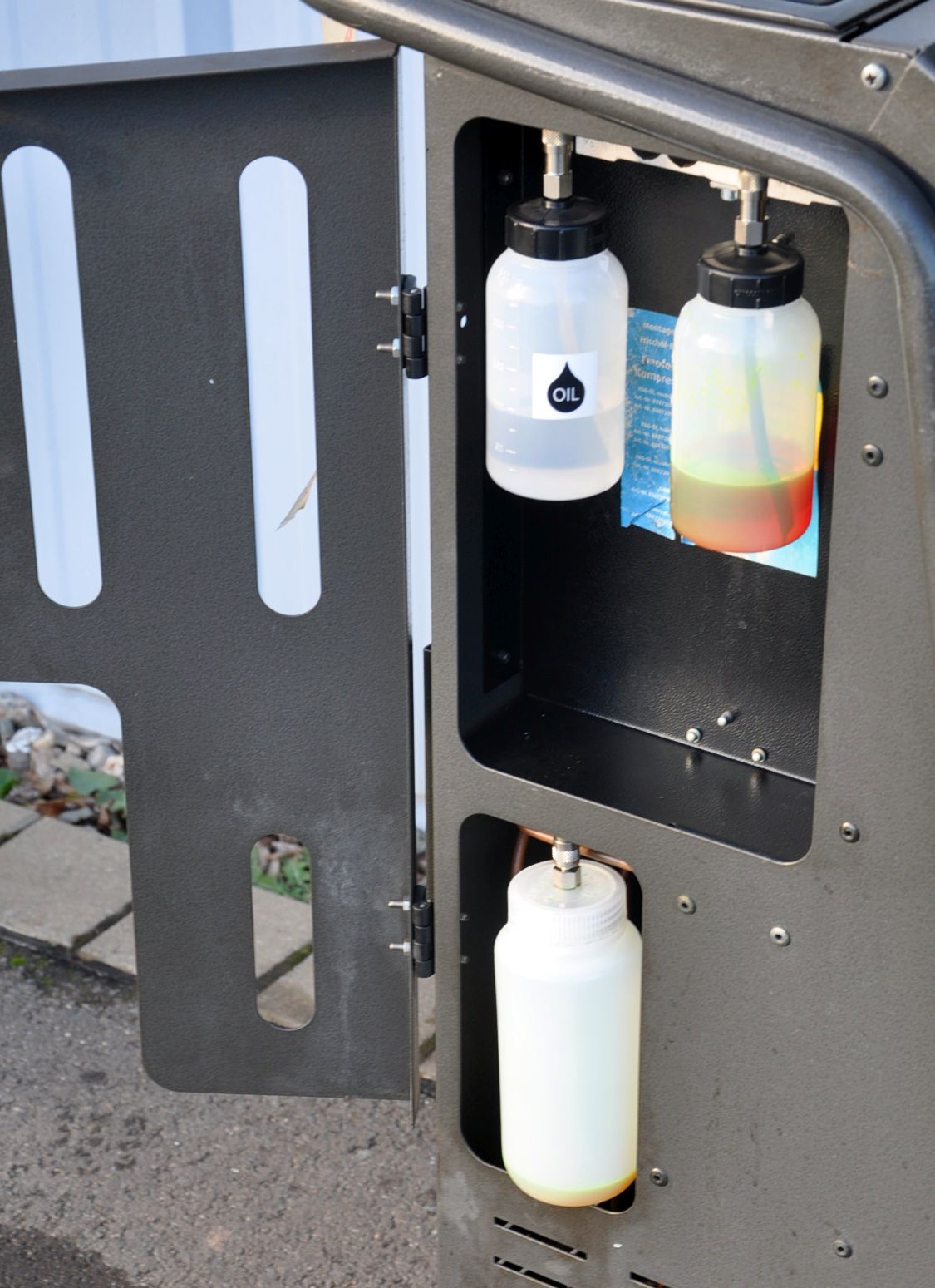 Das Gerät ist ein Vollautomat der nach Eingabe der Fahrzeugdaten den Service automatisch durchführt. ( absaugen, Recycling, Evakuieren, Öl absaugen, Öl einfüllen, Kontrastmittel einfüllen, Kältemittel befüllen )