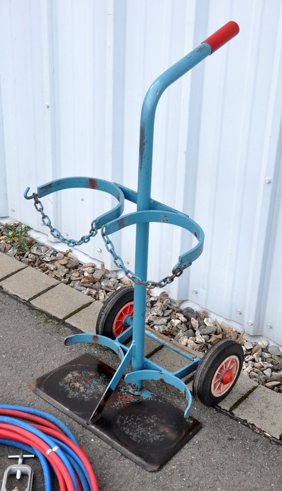 Sie kaufen einen technisch voll funktionstüchtigen gebrauchten Autogen Flaschenwagen mit Autogen-Schweißschlauch und Schneidbrenner mit Einsatz.Artikelmerkmale