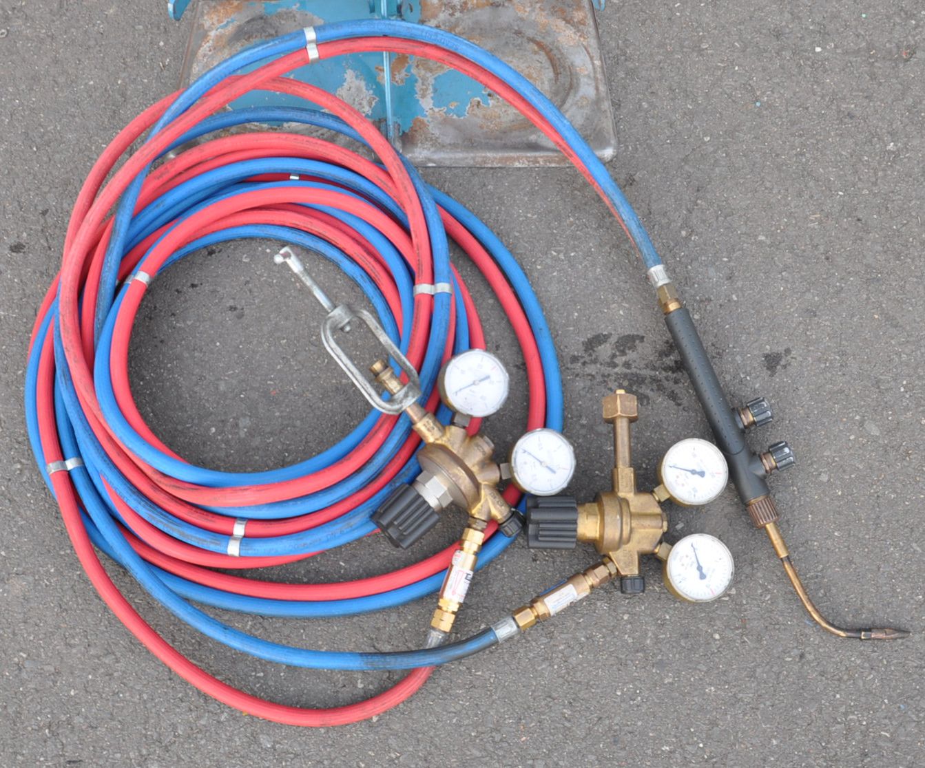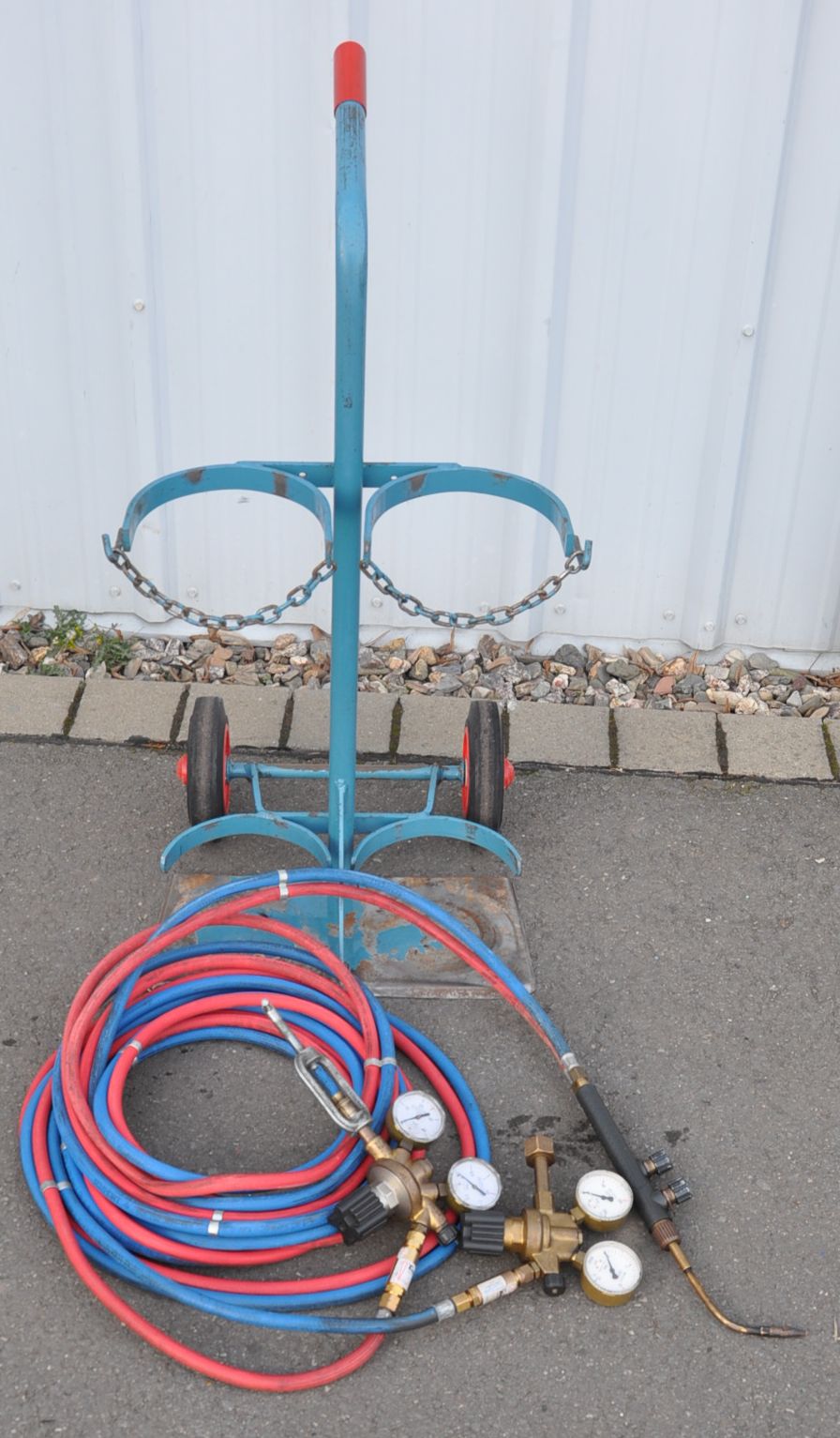 Sie kaufen einen technisch voll funktionstüchtigen gebrauchten Autogen Flaschenwagen mit Autogen-Schweißschlauch und Schneidbrenner mit Einsatz.Artikelmerkmale