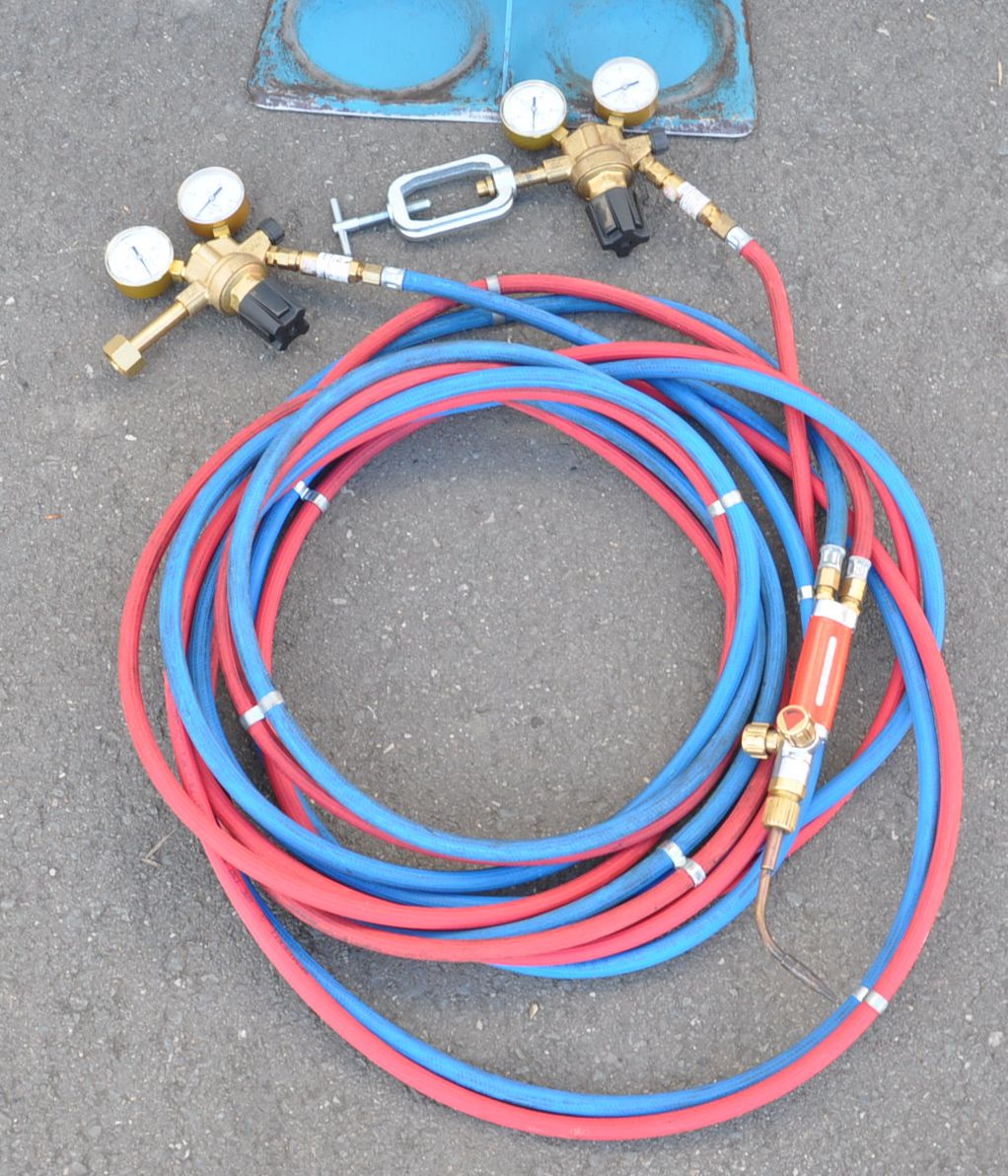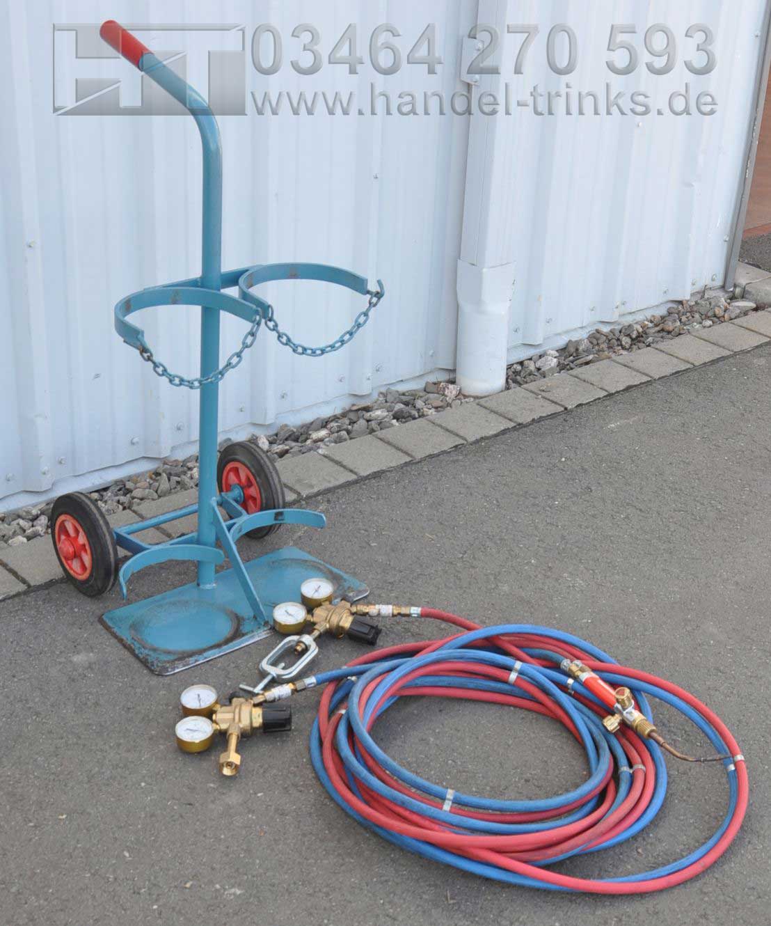Sie kaufen einen technisch voll funktionstüchtigen gebrauchten Autogen Flaschenwagen mit Autogen-Schweißschlauch und Schneidbrenner mit Einsatz.Artikelmerkmale