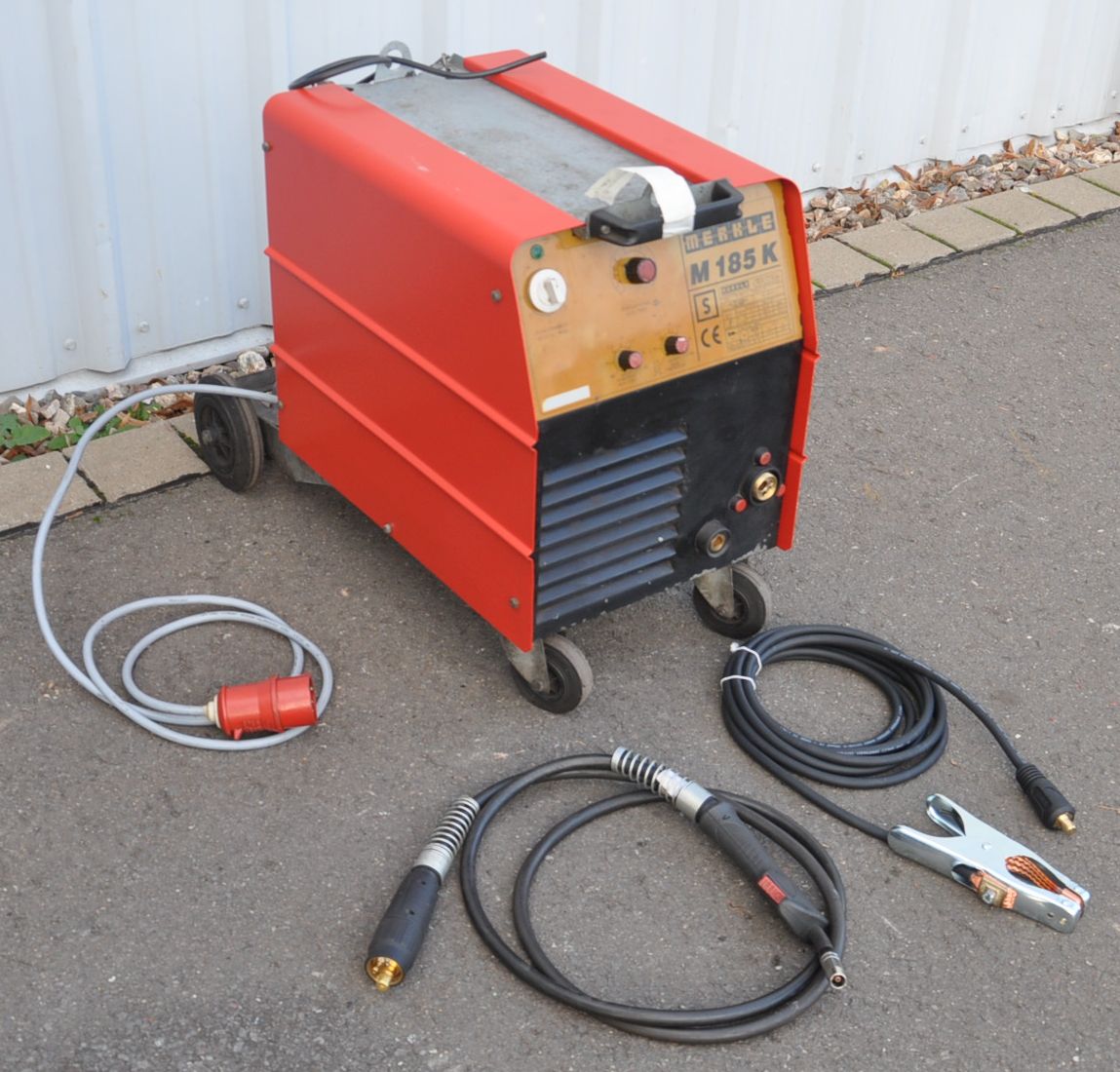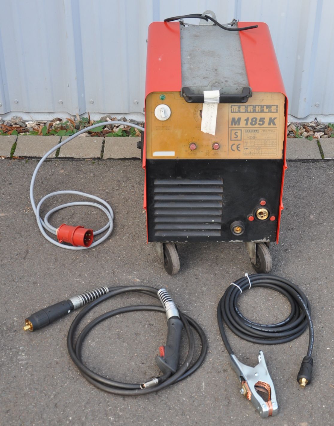 MERKLE M185K MIG MAG CO2 Schutzgas Schweißgerät Sie kaufen ein gebrauchtes / überprüftes Schweißgerät in voll funktionstüchtigem Zustand. Sie benötigen nur Schweißdraht und Schutzgas um arbeiten zu können.