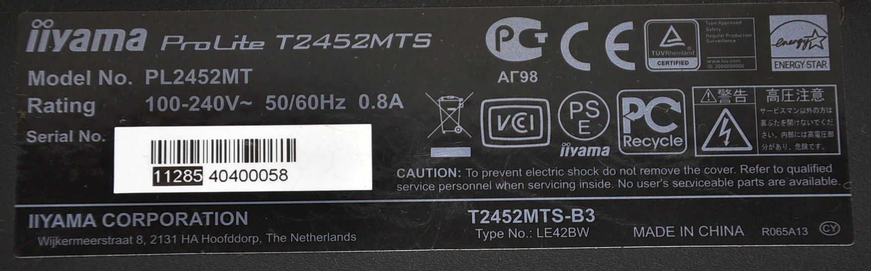 Startseite » Onlineshop » Verschiedenes » iiyama ProLite T2452MTS Touch Monitor 23,6 Zoll Bildschirm Gutmann MM66 Diagnose