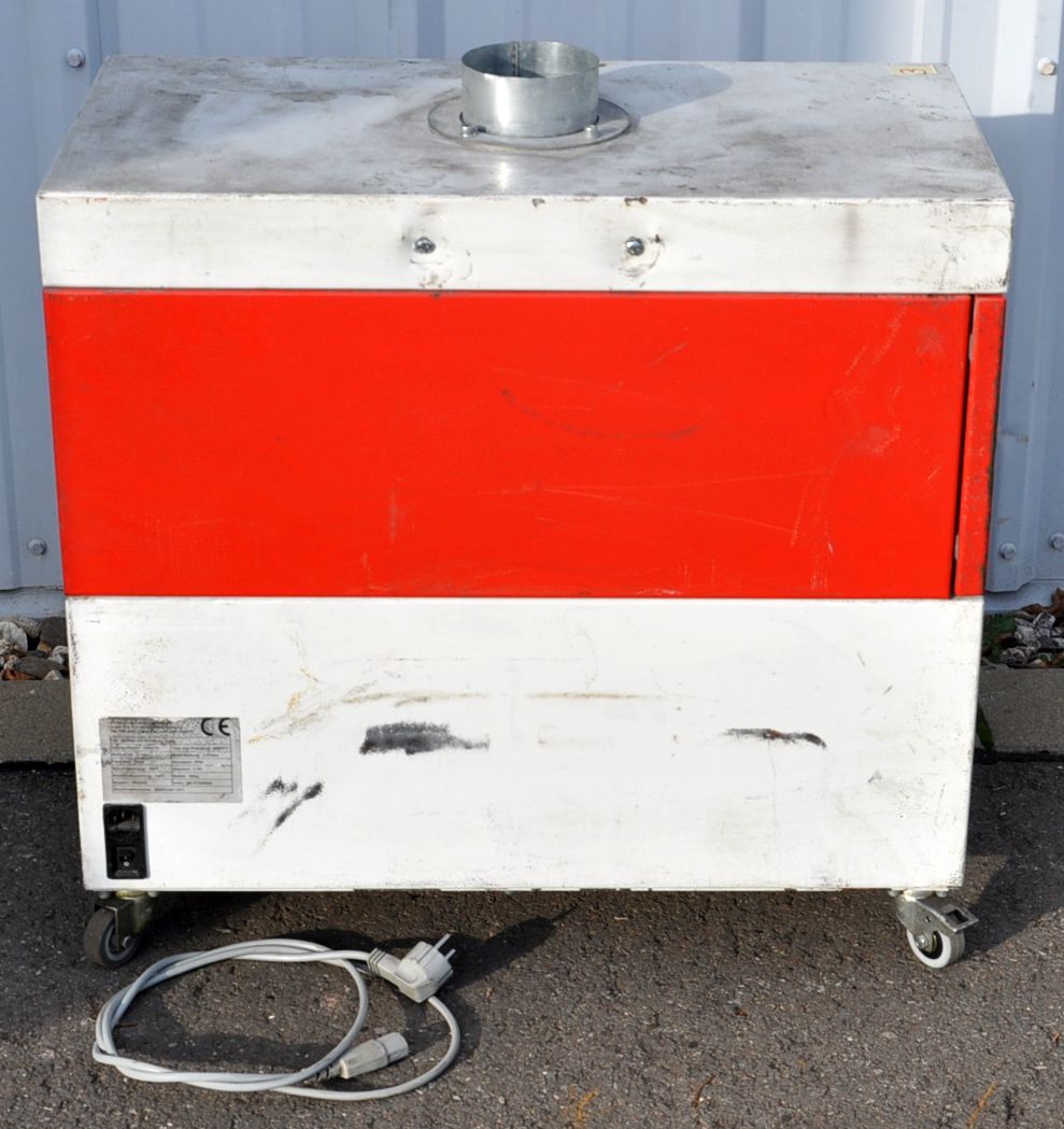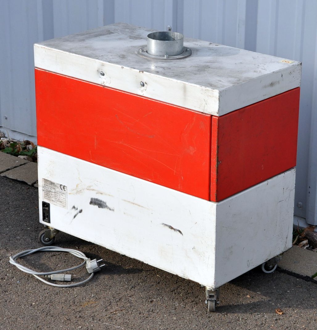 Sie kaufen eine gebrauchte Absaugung von TEKA zum im Raum Absaugung ohne Abluftrohr. Die Absaugung besitzt eine Saug - und Vorfiltereinheit, durch eine große Wartungstür ist die Filtereinheit gut zugänglich. Die Anlage besitzt einen geräuscharmen Ventilator und hat eine geringe Bauhöhe so das man Sie unter eine Werkbank rollen kann. Sie wurde gesäubert, funktioniert einwandfrei und ist in gutem Zustand.