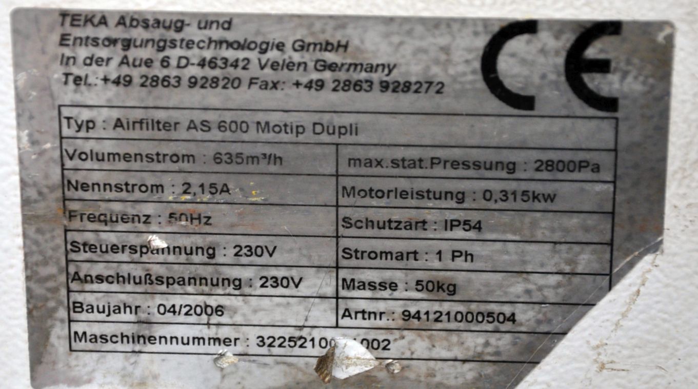 Lackierabsaugung TEKA Airfilter AS600 Motip Dupli Lackierfilter Smart Repair